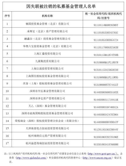 中基協(xié)公布第十批17家被注銷私募名單:疑似“善林系”公司、浙大科創(chuàng)參股機構(gòu)上榜