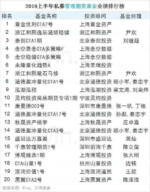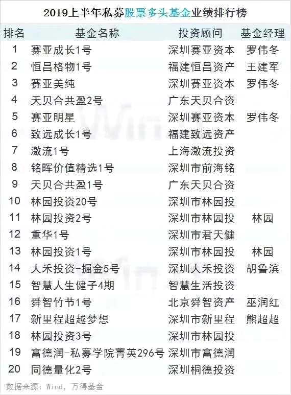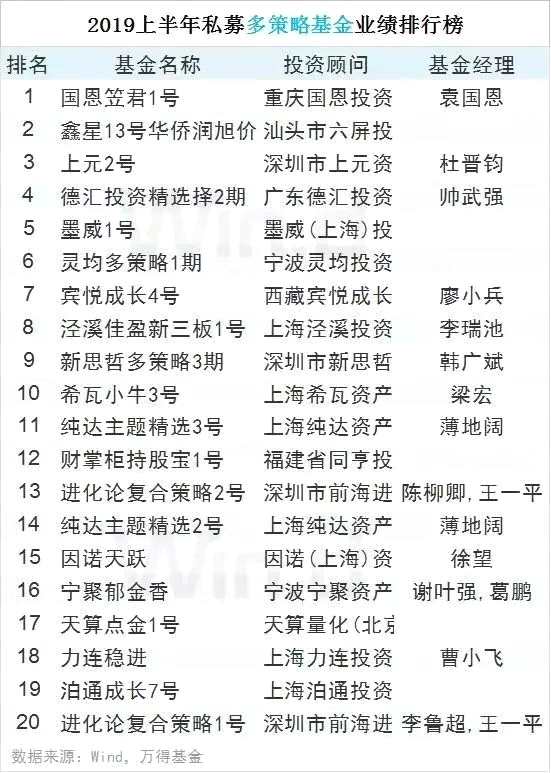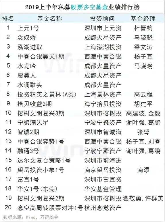 2019上半年私募基金業(yè)績(jī)排行