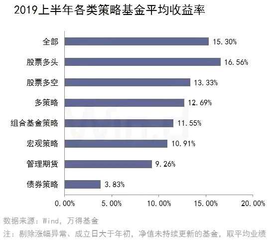 從各類策略私募基金2019上半年業(yè)績(jī)表現(xiàn)看,股票多頭策略基金平均收益率最高,達(dá)16.56%,其次是股票多空策略基金13.33%。