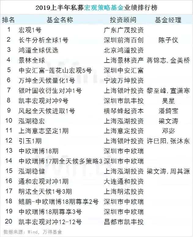 10私募宏觀策略基金業(yè)績(jī)榜TOP20