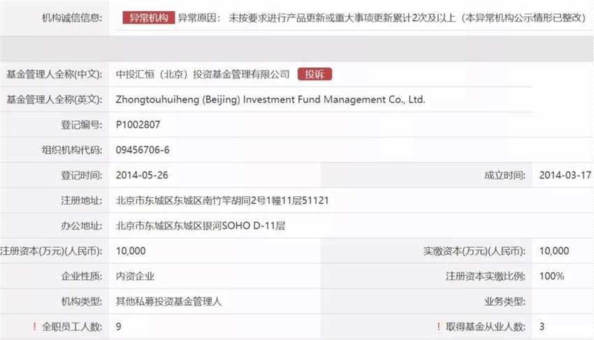 而中基協(xié)官網(wǎng)顯示,中投匯恒基金機構(gòu)類型為其他私募投資基金管理人。投資范圍為除證券及其衍生品和股權(quán)以外的其他領(lǐng)域的基金,與其官網(wǎng)資料明顯不符。