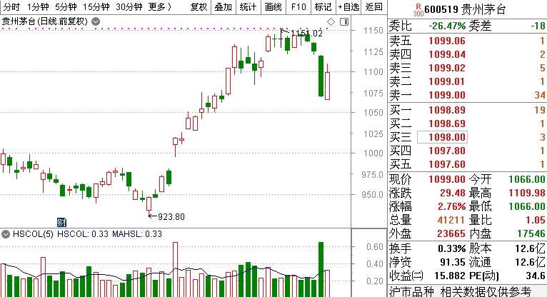實(shí)際上今年以來,茅臺(tái)酒市場價(jià)漲勢迅猛,股價(jià)也不斷攀上新高。但近日市場上一則網(wǎng)傳消息引起巨大關(guān)注,稱北京茅臺(tái)價(jià)格大幅降價(jià),“一周從2650跌到2100”,引起關(guān)注。對(duì)此有私募人士指出,與經(jīng)銷商批量銷售為主不同,“黃?!睘榱酥\取更高利潤,一般都“按瓶散售”,除了渠道收緊之外,飛天茅臺(tái)中秋前各渠道開始放貨,供給增大,因此導(dǎo)致‘黃牛’恐慌拋售。而市場風(fēng)吹草動(dòng)也立馬傳導(dǎo)至前期漲幅巨大的白酒板塊,9月11日貴州茅臺(tái)全天跌4.83%,這也是自今年5月6日(跌6.98%)以來的最大跌幅,市值一天跌去682億元。同時(shí)A股白酒板塊全線下跌,【五糧液(000858)、股吧】(000858)跌5.82%跌幅最大,整個(gè)白酒板塊市值一天跌去1263億元。