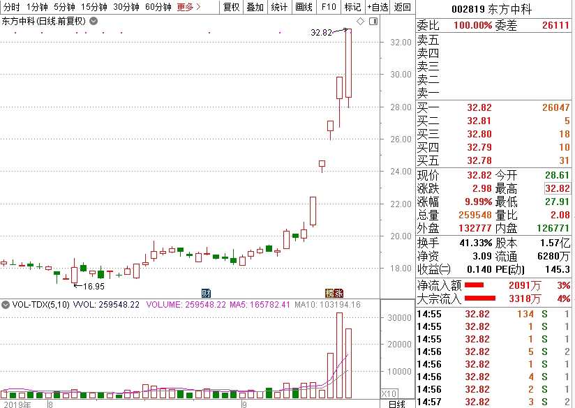 今年的科技股行情在最近演繹得淋漓盡致,不少科技股龍頭股價(jià)都創(chuàng)了歷史新高,在科技股大多走出了翻倍走勢(shì)之后,近期科技股進(jìn)入到了高低切換的行情中。在9月18日,多只強(qiáng)勢(shì)股出現(xiàn)大跌,而一只華為概念股東方中科卻頂住天量換手走了出來(lái),頑強(qiáng)站上漲停板,成為當(dāng)日兩市唯一一只四連板個(gè)股。9月19日,該股依然放量漲停。