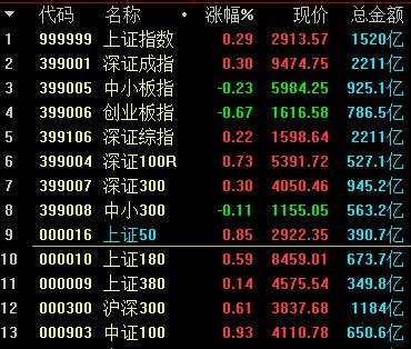 10月第一個(gè)交易日,滬深兩市盡管在一定程度上受到了外圍市場(chǎng)震蕩走弱的不利影響,但主要股指仍然多數(shù)收紅。其中,上證綜指、深證成指分別收漲0.29%和0.30%,至2913.57點(diǎn)和9474.75點(diǎn);而上證50、中證100等權(quán)重指數(shù),整體表現(xiàn)明顯領(lǐng)先于中小市值指數(shù)。