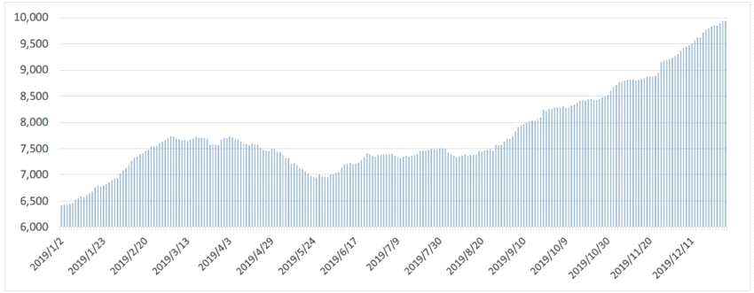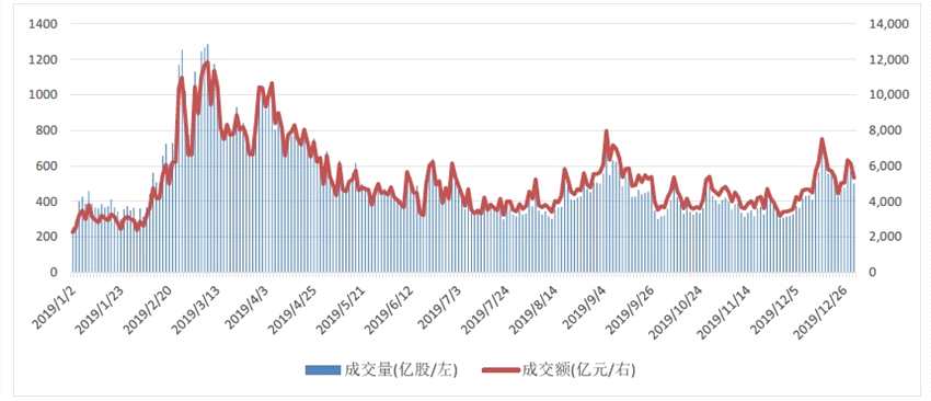 從大盤(pán)走勢(shì)上看,2019年是絕對(duì)的牛市行情,上證指數(shù)全年漲幅超過(guò)20%,在科技板塊行情的加持下,深證成指和創(chuàng)業(yè)板指全年漲幅更是超過(guò)40%。全年來(lái)看,5月份和7月份市場(chǎng)經(jīng)歷了較大幅度的回調(diào),三季度市場(chǎng)開(kāi)始回暖,指數(shù)點(diǎn)位開(kāi)始修復(fù)。