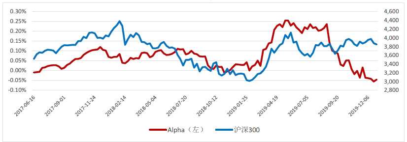 2019年上半年高頻量化Alpha策略表現(xiàn)優(yōu)異,下半年長(zhǎng)期處于橫盤(pán)狀態(tài)。以量?jī)r(jià)因子為主的高換手Alpha策略收益主要受市場(chǎng)流動(dòng)性、市場(chǎng)投資程度、股指期貨貼水程度以及策略擁擠度、市場(chǎng)風(fēng)格切換等因素影響。