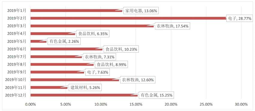 圖4:2019年單月漲幅居首行業(yè)(申萬(wàn)一級(jí))