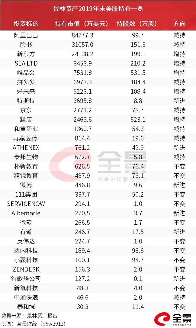 近日,百億私募:景林資產(chǎn)管理公司遞交了截至2019年12月31日的四季度(Q4)持倉報(bào)告(13F)。