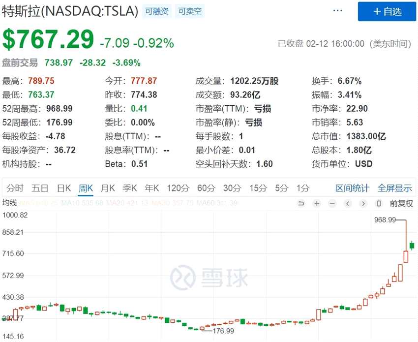 2020年伊始,特斯拉成為全球關(guān)注的焦點(diǎn),股價(jià)一路狂飆,從2019年6月跌破200美元到今年一度漲破300美元、400美元、500美元……甚至一度沖高至967美元的高點(diǎn),暴漲超4倍,同時(shí)也帶動(dòng)A股相關(guān)概念股頻頻拉升。