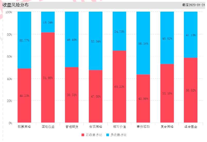 圖2-3:八大策略私募基金2020年1月份正負(fù)收益比例