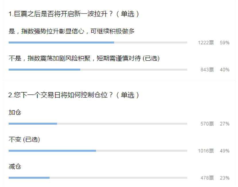 值得注意的是,在經(jīng)過(guò)今天市場(chǎng)的天量巨震之后,散戶投資者對(duì)于后市的看法正出現(xiàn)顯著分歧。今晚國(guó)內(nèi)某知名財(cái)經(jīng)電視頻道面向個(gè)人投資者的一份問(wèn)卷調(diào)查顯示,有多達(dá)四成的投資者認(rèn)為,經(jīng)過(guò)今天的巨震之后,市場(chǎng)的風(fēng)險(xiǎn)正在積聚。