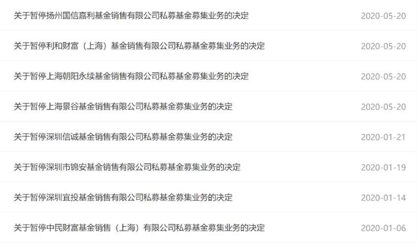今年以來,已經有8家銷售機構被協(xié)會叫停私募基金募集業(yè)務,有些被要求整改,直到驗收合格才能恢復業(yè)務。