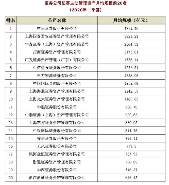 券商一季度私募資產(chǎn)管理月均規(guī)模排名來(lái)了:中信證券1.08萬(wàn)億元領(lǐng)先
