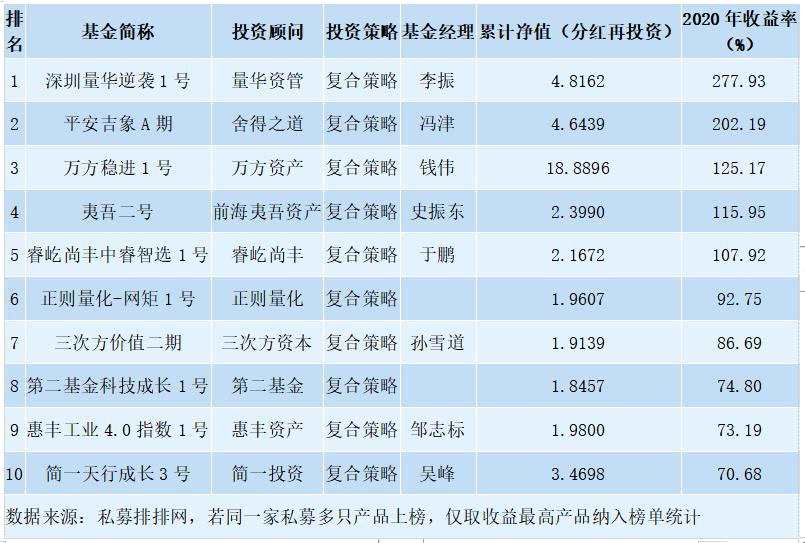 私募先鋒榜(大灣區(qū))2020年復(fù)合策略排行榜(制表:投資快報(bào)股市廣播)