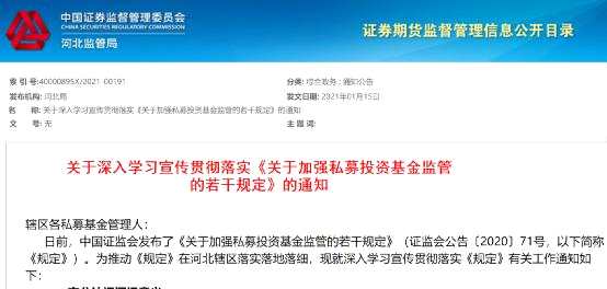 河北證監(jiān)局也發(fā)了私募自查通知