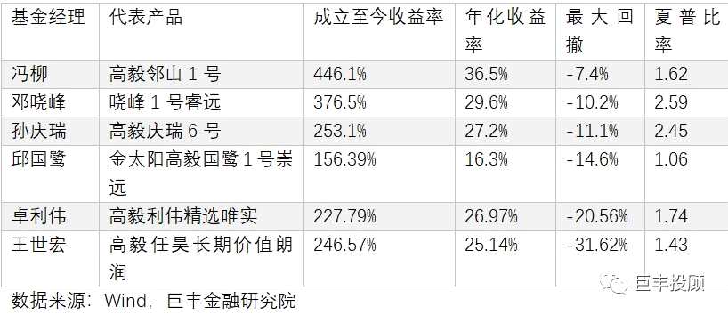 在明星團隊的光環(huán)之下,高毅資產的規(guī)模在短短6年多的時間里得到了飛速的發(fā)展。截止2020年底,高毅資產管理規(guī)模超過2500億,是第二名明汯投資的2倍多,躋身中國最頂級私募行列。從業(yè)績上看,2015年發(fā)行第一支基金以來,幾個明星基金經理管理的產品年化收益率都接近30%,屬于同類產品中的佼佼者。