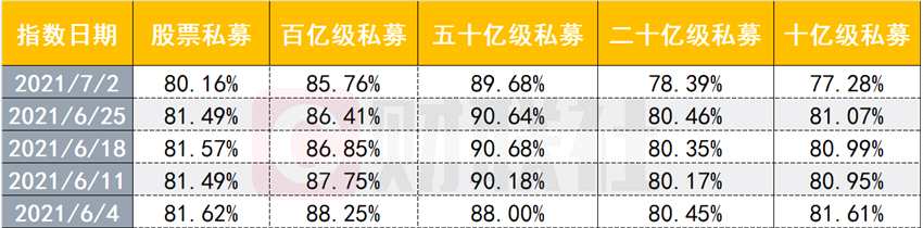 不過從目前私募的倉位來看,截至7月初,股票私募整體倉位指數(shù)為80.16%,環(huán)比減倉1.33個百分點,單周減倉力度創(chuàng)出年內(nèi)之最。具體來看,倉位超過八成的股票私募占比下降至64.87%,倉位低于兩成的股票私募占比升至4.58%。