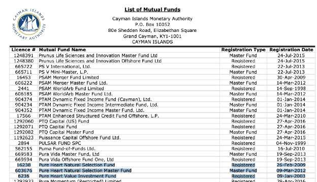 Pure Heart Value Investment Fund相關(guān)材料顯示,基金使用宏觀(主策略)和股票策略,基金于開(kāi)曼群島注冊(cè),投資目標(biāo)是通過(guò)靈活投資獲得中長(zhǎng)期的資本增值。投資標(biāo)的包括股票、債券等多類(lèi)資產(chǎn)、既包括上市證券也包括未上市證券。這只基金今年前11個(gè)月收益達(dá)57.71%。 另一只產(chǎn)品Pure Heart Natural Selection Fund 今年前11個(gè)月收益也超過(guò)了50%,不過(guò)規(guī)模較Pure Heart Value Investment Fund小些。