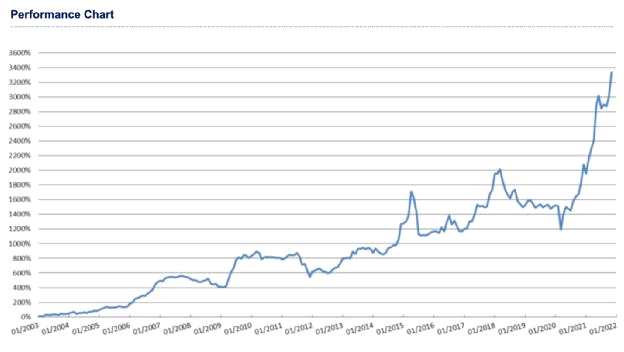 不僅僅是今年一年表現(xiàn)優(yōu)異,基金君獲悉,Pure Heart Value Investment Fund自2003年設(shè)立以來(lái),累計(jì)回報(bào)達(dá)33.34倍。