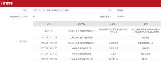 最新備案信息顯示,信誠基金原基金經(jīng)理聶煒和中?;鹪顿Y經(jīng)理曾秀娟,在1月11日登記了一家新機(jī)構(gòu)“海南賁舜私募基金管理有限公司”,他們曾是公募的同事,都在公募基金干過8、9年,現(xiàn)在一起建立新私募,分別擔(dān)任權(quán)益投資總監(jiān)和固收投資總監(jiān)。