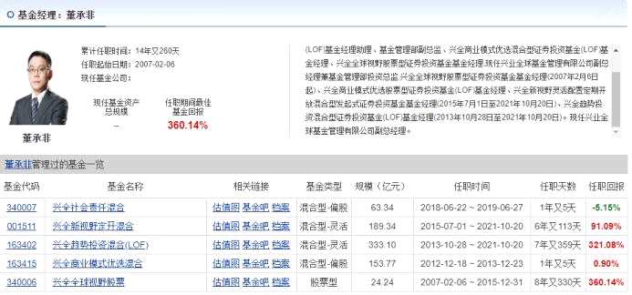 公開(kāi)資料顯示,2003年畢業(yè)后,董承非便進(jìn)入興證全球工作,2007年2月開(kāi)始管理興全全球視野股票基金,在其擔(dān)任基金經(jīng)理期間,先后管理了5只基金,管理時(shí)間最長(zhǎng)的是興全全球視野股票。這只基金董承非管理了近9年,任職回報(bào)達(dá)360%,也是其任職回報(bào)最高的基金。