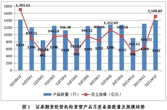 摘要: 一、私募資管產(chǎn)品備案情況2021年12月,證券期貨經(jīng)營機(jī)構(gòu)當(dāng)月共備案私募資管產(chǎn)品1410只,設(shè)立規(guī)模1,508.89億元(見圖1);當(dāng)月備案的集合產(chǎn)品備案辦理時(shí)間平均為1.72個(gè)工作日。