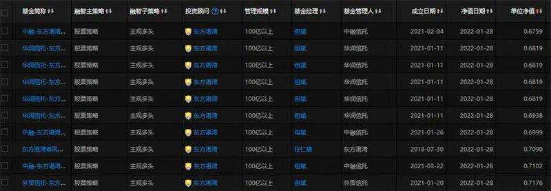 第三方平臺(tái)數(shù)據(jù)顯示,截至1月28日,東方港灣旗下超20只產(chǎn)品凈值跌破0.8元,部分產(chǎn)品凈值更是跌至0.7元以下,其中大部分產(chǎn)品成立于2021年一季度,由但斌擔(dān)任基金經(jīng)理。