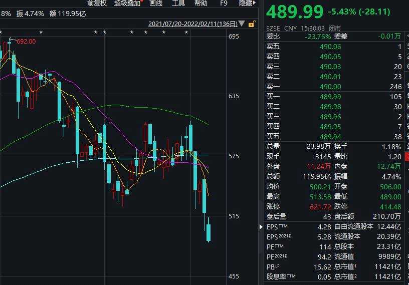 今日,寧德時代繼續(xù)大幅回調,截至收盤,下跌5.43%,粗略計算,寧德時代在短短5個交易日內,市值蒸發(fā)超2300億。
