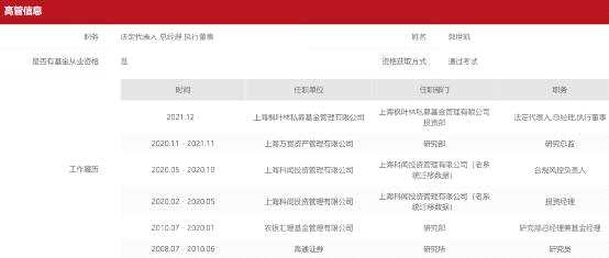 上海楓葉林私募基金的法定代表人、總經理、執(zhí)行董事郭世凱,也是一位公募出身的投資老將。他擁有超過13年的金融從業(yè)經驗,曾任海通證券研究所研究員,2010年7月加入農銀匯理基金,歷任研究員、基金經理助理、研究部總經理兼基金經理。