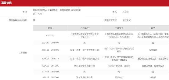 馮士禎在2011年7月加入信達澳銀基金,歷任研究員、基金經理助理、基金經理,管理過信達澳銀中小盤、信達澳銀領先增長、信達澳銀新財富、信達澳銀新目標等多只基金;2019年6月他加入博時基金,擔任特定資產管理部投資經理,直到2021年10月離開;2022年1月他“公奔私”,創(chuàng)立珠海橫琴明富私募基金。