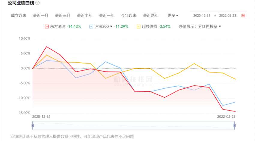 不過,白酒股在去年年初開始整體回調(diào),茅臺從逾2600點的高位迅速回落,與此同時,新能源等成長賽道走俏。因此,東方港灣整體在2021年全年表現(xiàn)平平,產(chǎn)品回撤加大。