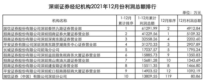 摘要: 深圳市證券業(yè)協(xié)會(huì)近日公布了2021年各大券商營(yíng)業(yè)部的“成績(jī)單”。國(guó)信證券(002736)深圳泰然九路營(yíng)業(yè)部拿下去年全年?duì)I業(yè)收入與利潤(rùn)總額雙料冠軍,分別為7.91億元、6.13億元,