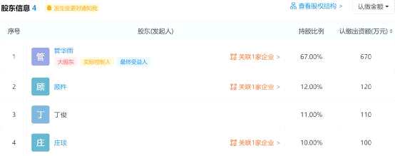 從股東信息來看,上海合遠(yuǎn)私募基金的大股東是管華雨,出資670萬,持有67%的股權(quán);還有顧杵、丁俊、莊琰,三人分別出資120萬、110萬、100萬,分別持股12%、11%、10%。