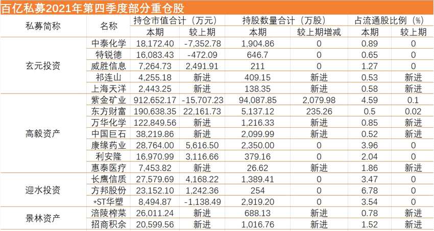 截至目前百億級(jí)私募在2021年第四季度