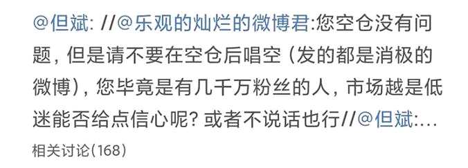 對于微博被禁言,4月6日中午,但斌在其雪球賬號上表示,“通知我的賬號將被禁言180天。我的微博無論好壞都轉(zhuǎn)發(fā),是想記錄歷史和時代,但不知哪條微博會被認(rèn)為有問題……遺憾!”