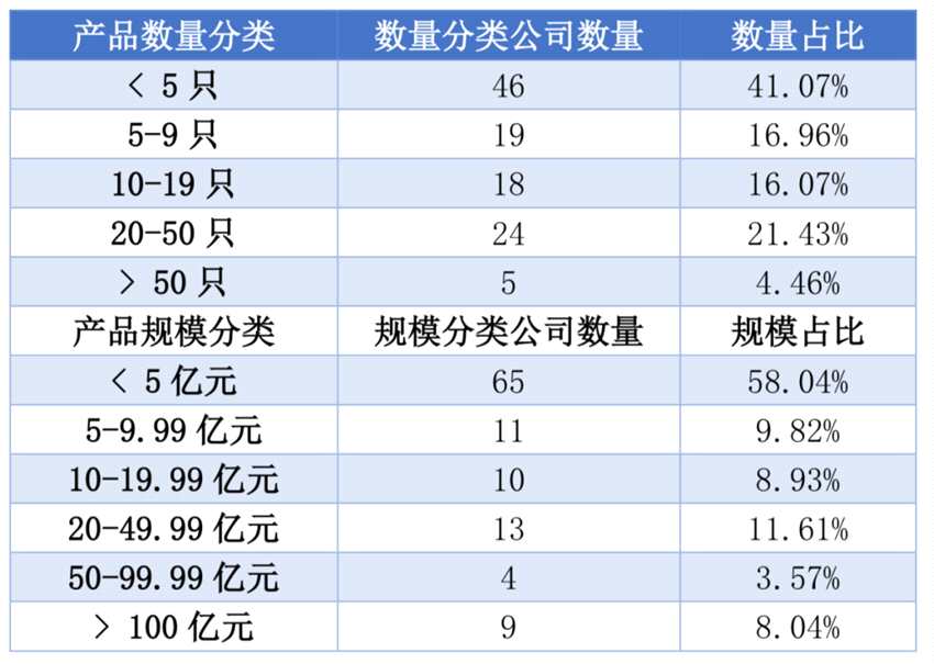 期貨行業(yè)中,截至3月底,資管產(chǎn)品數(shù)量小于5只的期貨公司共46家,占比 41.07%;產(chǎn)品規(guī)模合計小于5億元的公司共65家,占比58.04%。這些期貨公司的占比仍是行業(yè)大頭。
