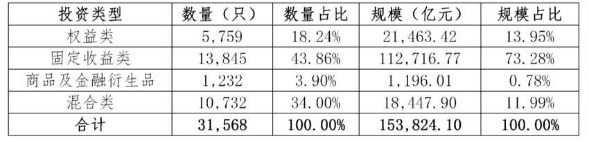 從證券期貨經(jīng)營機構(gòu)私募資管業(yè)務投資類型來看,今年一季度,固定收益類產(chǎn)品數(shù)量和規(guī)模均占據(jù)四類產(chǎn)品最大比例,混合類產(chǎn)品數(shù)量位居第二,權(quán)益類產(chǎn)品產(chǎn)品規(guī)模位居第二。商品及金融衍生品類產(chǎn)品數(shù)量和規(guī)模相對較小,產(chǎn)品1232只,占比3.9,規(guī)模1196.01億元,占比僅0.78%。