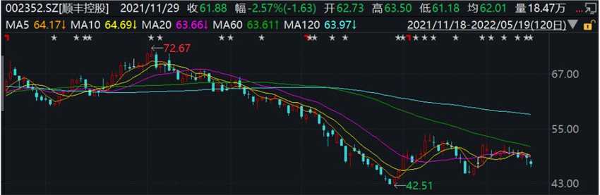 5月19日,順豐控股下跌2.88%,截至收盤,股價為47.2元/股。