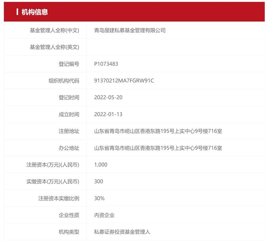 另一家名為“青島屋建私募基金管理有限公司”的私募,其背后高管也都是非常資深的資管老兵。這家機(jī)構(gòu)成立于今年1月,注冊(cè)資本1000萬元,一共有7名員工。