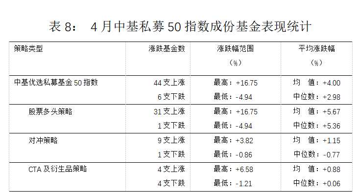圖4:中基優(yōu)選私募基金50指數(shù)分策略表現(xiàn)