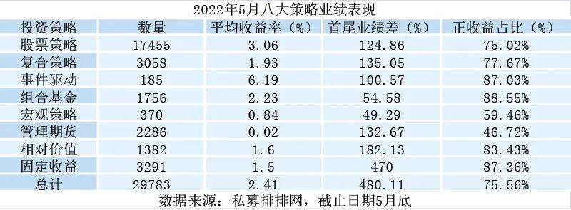 不過(guò),從月度表現(xiàn)來(lái)看,指數(shù)增強(qiáng)和CTA業(yè)績(jī)差距5月明顯縮小。據(jù)統(tǒng)計(jì),5月份有業(yè)績(jī)記錄的17455只股票基金5月整體收益為3.06%,正收益產(chǎn)品占比為75.02%。而今年以來(lái)表現(xiàn)最好的管理期貨策略5月業(yè)績(jī)墊底,整體收益為0.02%,正收益占比僅為46.72%。