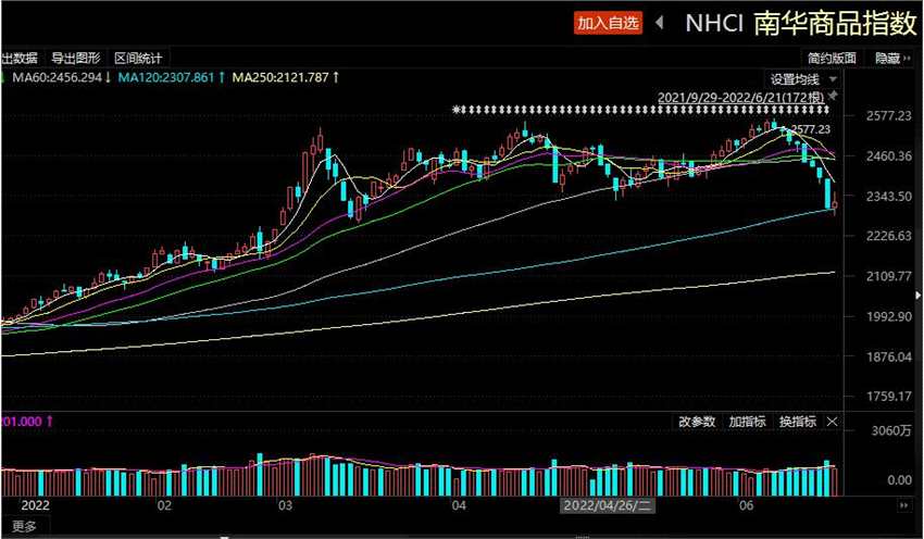 數(shù)據(jù)顯示,上周南華商品指數(shù)下跌5.34%,其中鐵礦石、焦炭和焦煤大跌10%,滬鎳和螺紋鋼均跌超9%。昨日,商品市場的跌幅進一步擴大,南華商品指數(shù)單日大跌3.75%。
