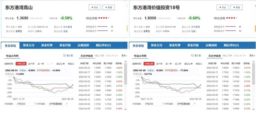 比如,好買基金數據顯示,截至6月24日,但斌管理的東方港灣價值投資18號單位凈值為1.8元,周度漲幅為4.47%。值得注意的是,從3月開始至6月2日,該產品凈值波動幅度非常小,周度凈值漲跌度幾乎從未超過0.7%,不過6月以來該產品波動幅度逐步增大。另外,截至6月24日,東方港灣高山的凈值漲跌幅為4.82%,而在3月至6月2日期間,該基金的凈值走勢幾乎為一條直線。