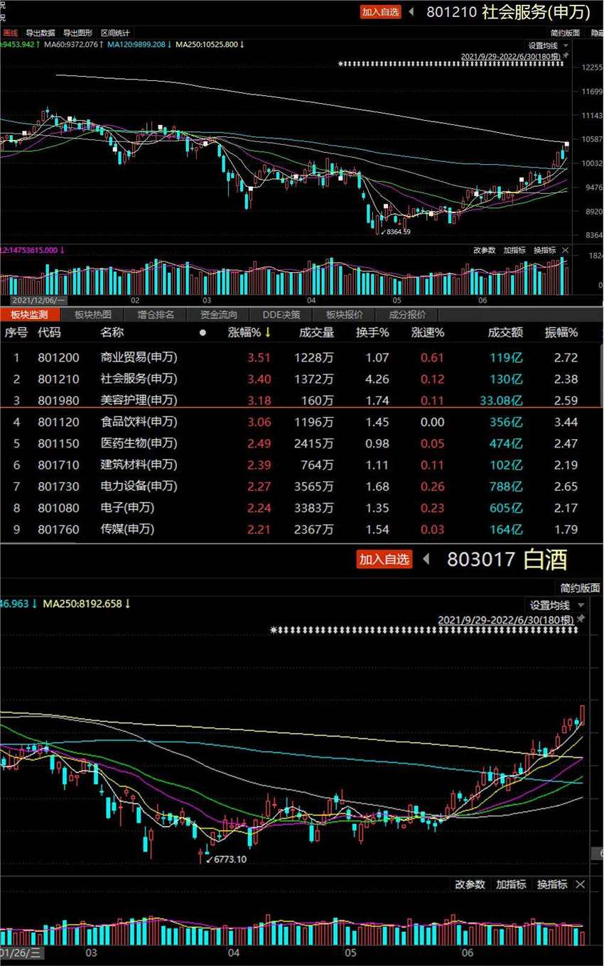 機構的高度關注下,消費板塊行情近期持續(xù)演繹。今日,社會服務、美容護理、食品飲料三大板塊強勢領跑,截至午間收盤漲幅均超過3%。另外,截至今日午間收盤,白酒指數漲幅超過15%,社會服務指數漲近12%,航空指數漲超13%。