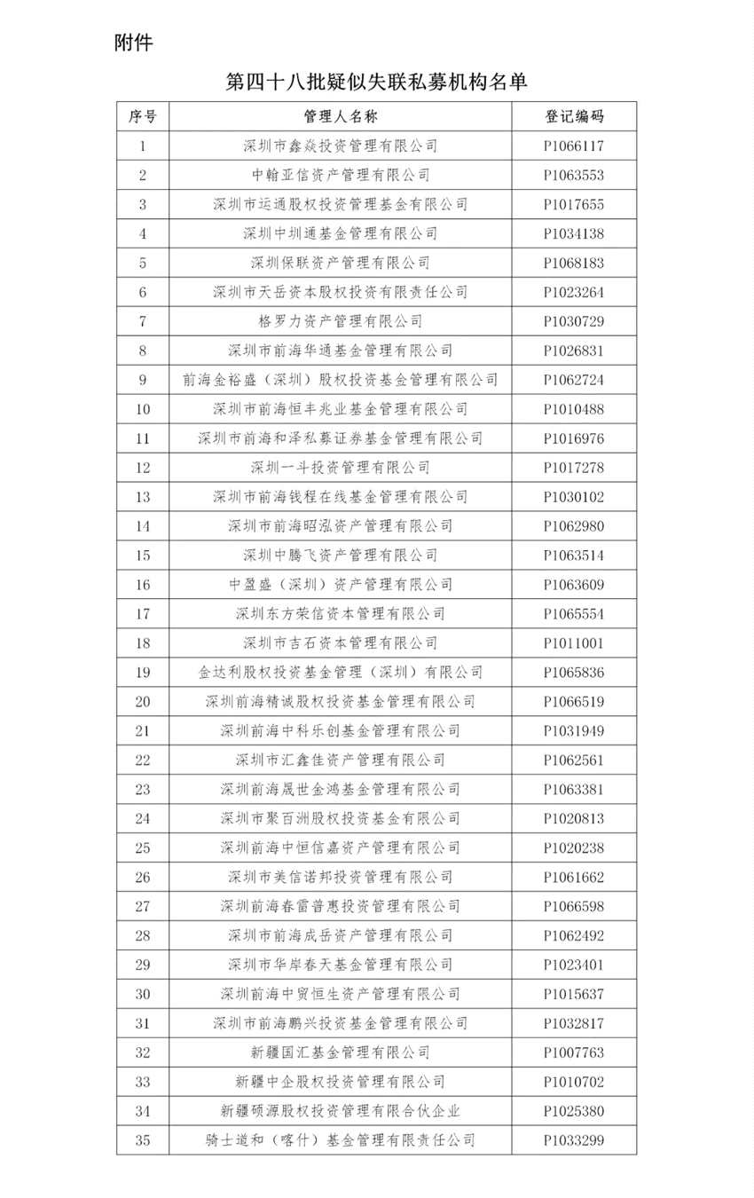 中國(guó)基金業(yè)協(xié)會(huì)公示第四十八批疑似失聯(lián)私募機(jī)構(gòu)