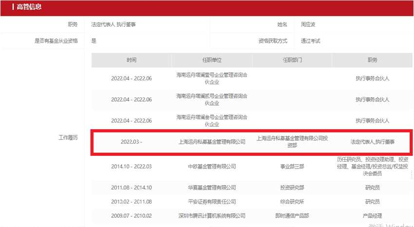 中國基金業(yè)協(xié)會官網顯示,由前公募基金經理周應波創(chuàng)辦的運舟資本已于7月11日完成備案,除了周應波擔任法定代表人之外,原中歐基金專戶投資部總監(jiān)、銀華基金前副總陸文俊將出任總經理一職。