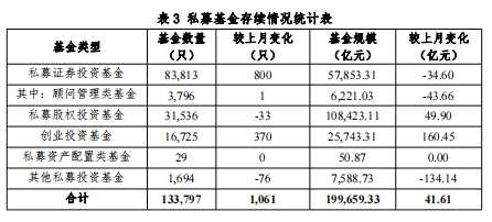 截至2022年6月末,存續(xù)私募基金133,797只,存續(xù)基金規(guī)模19.97萬(wàn)億元,較上月增加41.61億元,環(huán)比增長(zhǎng)0.02%。其中,存續(xù)私募證券投資基金83,813只,存續(xù)規(guī)模5.79萬(wàn)億元,環(huán)比下降0.06%;存續(xù)私募股權(quán)投資基金31,536只,存續(xù)規(guī)模10.84萬(wàn)億元,環(huán)比增長(zhǎng)0.05%;存續(xù)創(chuàng)業(yè)投資基金16,725只,存續(xù)規(guī)模2.57萬(wàn)億元,環(huán)比增長(zhǎng)0.63%。