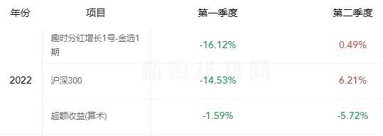 趣時分紅增長1號-金選1期以-15.71%位居該公司旗下基金上半年跌幅榜第一,該基金成立于2018年4月24日,為主觀多頭股票策略基金,截至2022年6月30日,其累計收益率為89.89%。