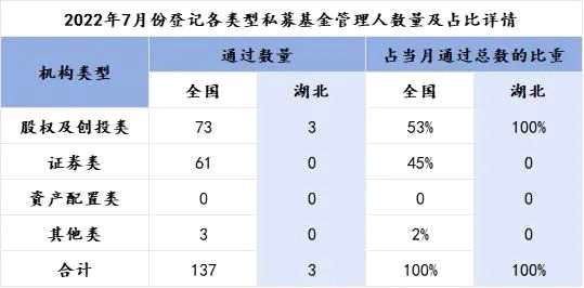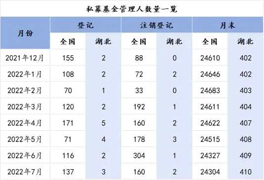 【行業(yè)數(shù)據(jù)】2022年7月湖北私募基金管理人登記情況