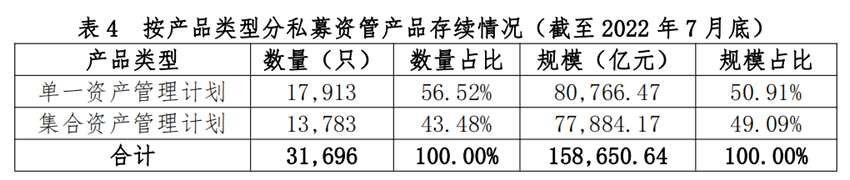 從產(chǎn)品類型看,7月存續(xù)單一資產(chǎn)管理計(jì)劃規(guī)模占比為50.91%(見表4)。